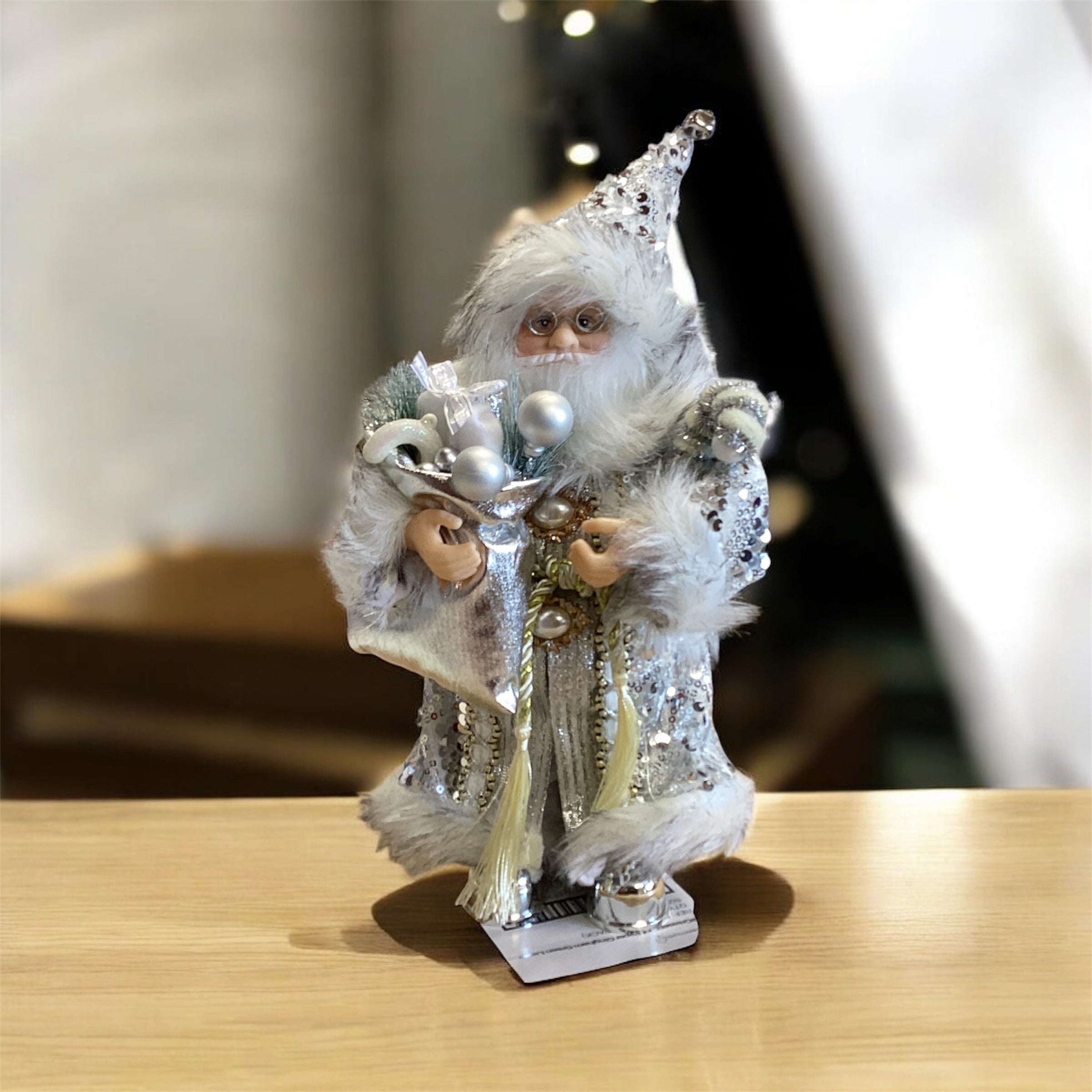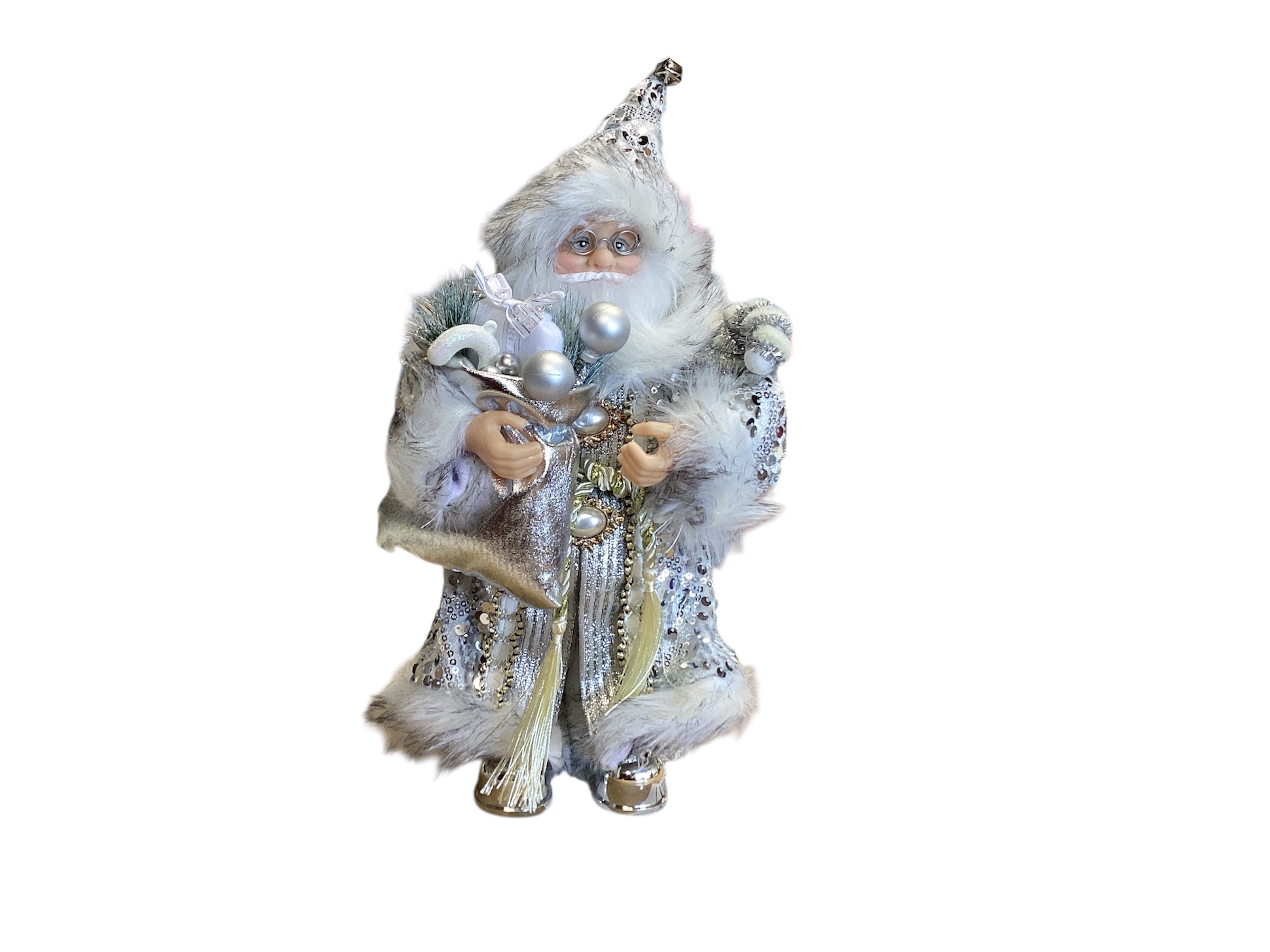 XMAS Gift Set- Santa with Gifts SILVER 35cm 1pcs