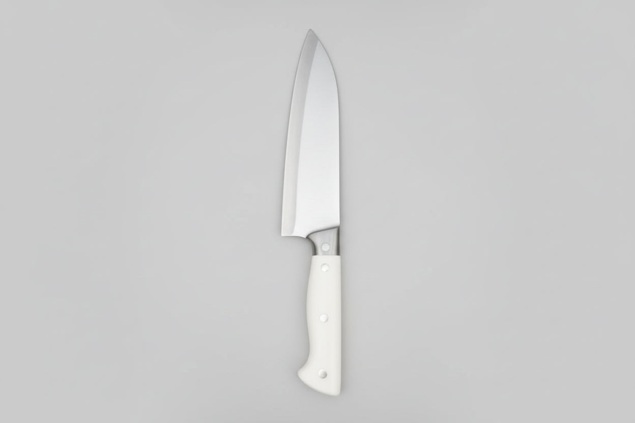 Knife Steel head with white ABS handle, polished blade 7-inch 3mm is backordered and will ship as soon as it is back in stock.