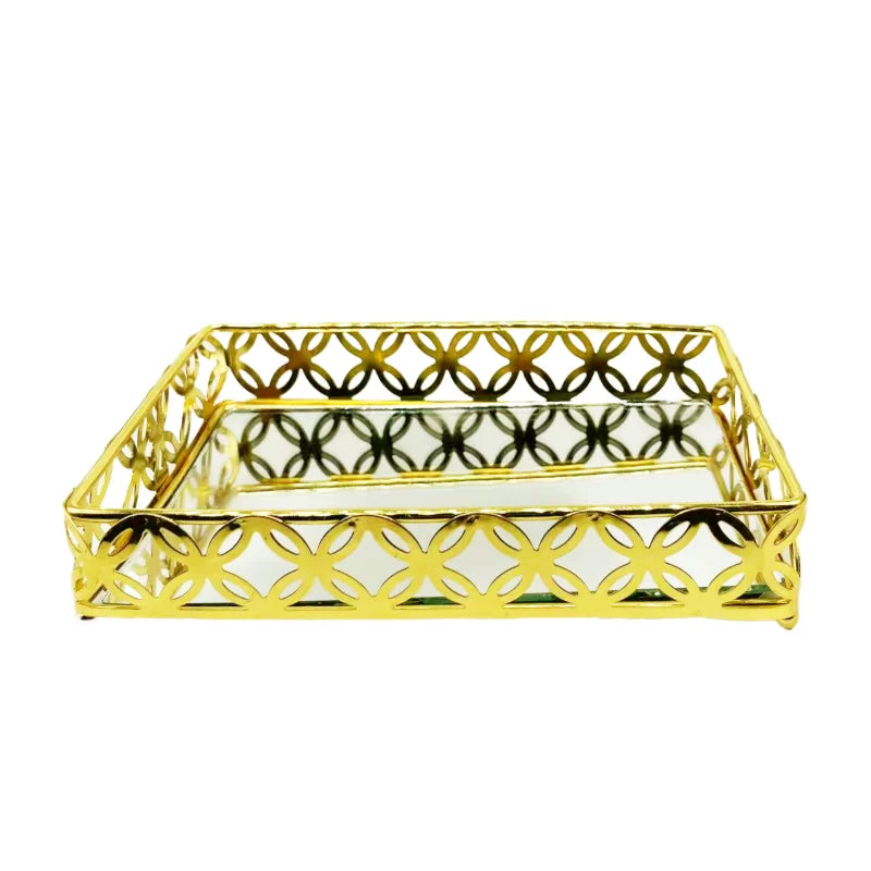 EID Golden Mirror Rectangle Serving Tray 20cm 1 pcs