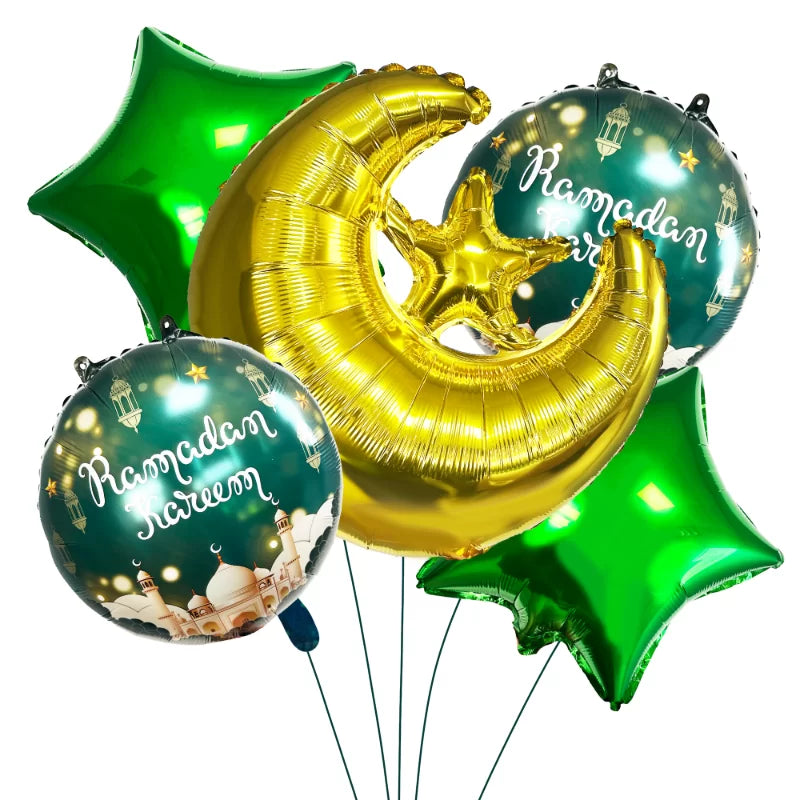18" Ramadan Kareem Foil Balloon*218" Green Star*224" Gold Moon & Star *1