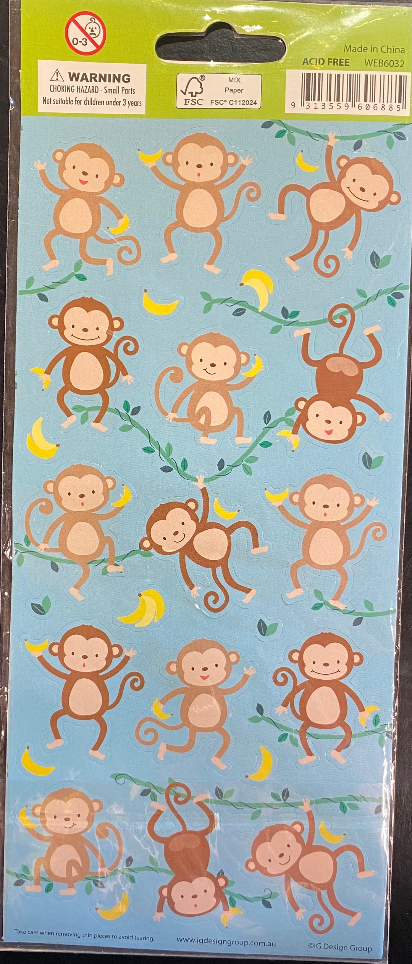 Monkey Sticker Sheet 53 Stickers 2 Sheets