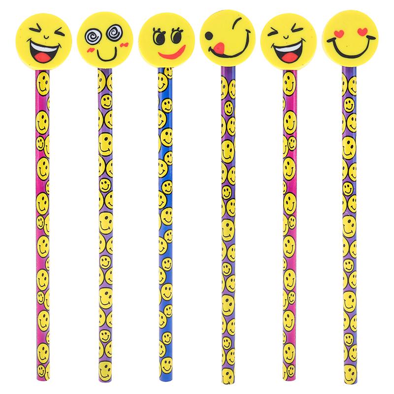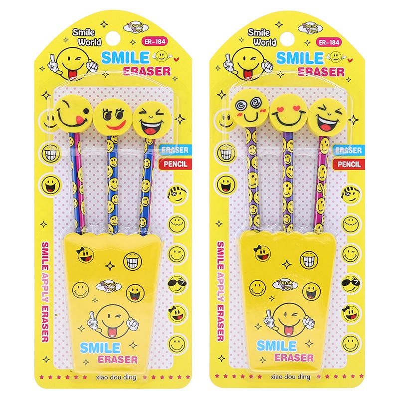 Pencil & Eraser Set 3pcs Emoji Design Assorted Styles