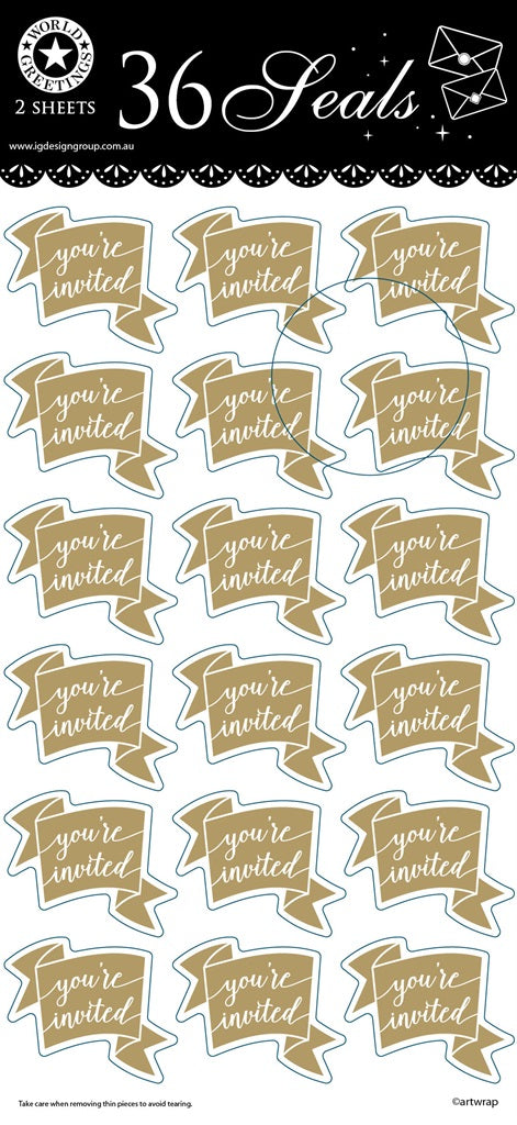 SEAL 2 Sheets YOURE INVITED Gold 36 seals is backordered and will ship as soon as it is back in stock.
