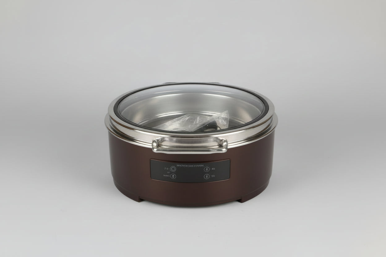 • 8-litre stainless steel chafing dish with elegant round design for professional catering and event service