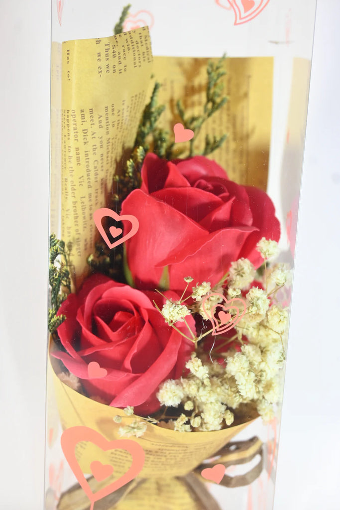 Versatile for Gifting: The Heart-themed packaging makes this bouquet ideal for gifting on special occasions such as Valentine’s Day, anniversaries, birthdays, or just as a surprise to brighten someone's day.