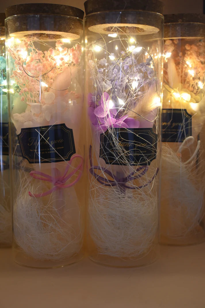 Dried Flower Bouquet in Glass Jar with LED Lights