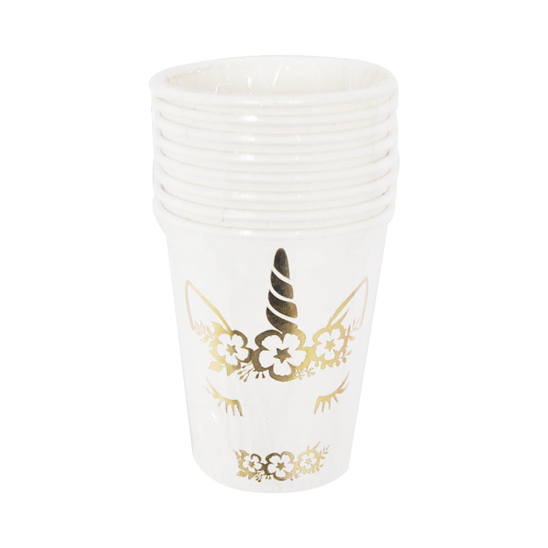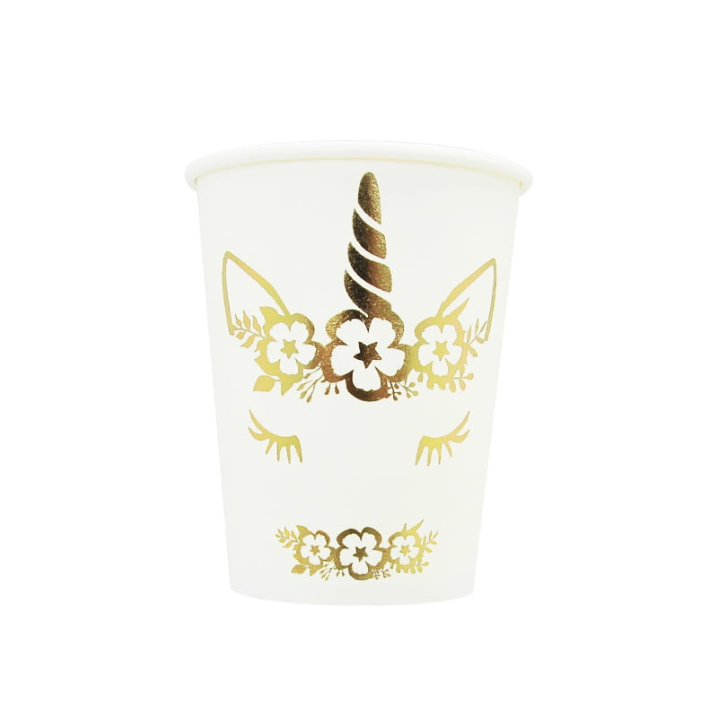 GOLD FOIL UNICORN PAPER CUPS 6PK